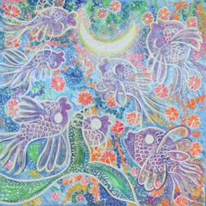 “Pastel Moon” Contemporary Moon & Ocean Painting