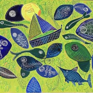 Acrylic, Glow in the dark, contemporary original art “Hexagon”